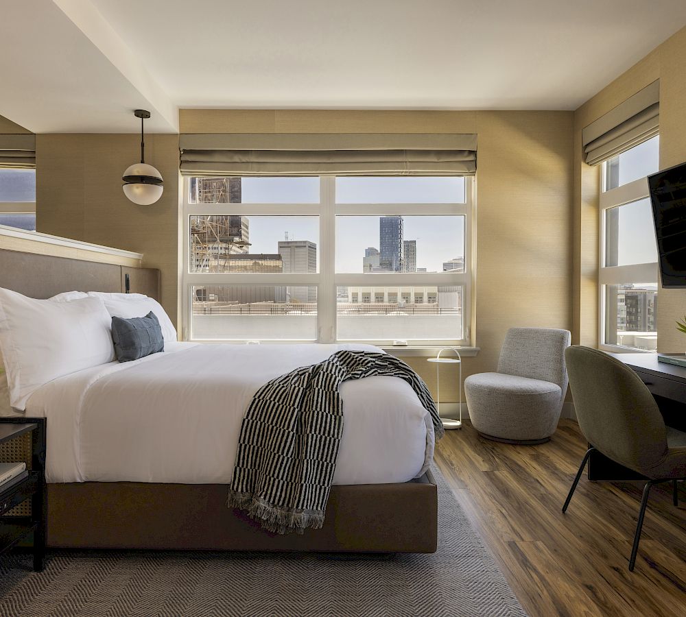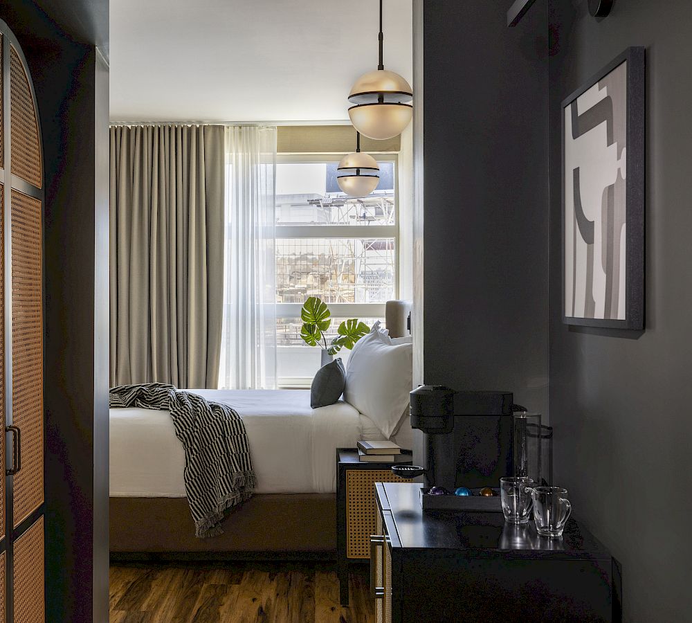 Upgrade your stay with one of our 10 premium suites, each well-appointed with chic décor and locally-sourced products. Premium vinyl plank wood flooring and woven designer area rugs gives the rooms a residential feel, while the luxurious bathrooms feature Cipollino marble-clad vanities, handcrafted ceramic wall tile, and Kohler fixtures.